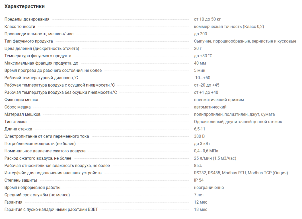 В линию включен дозатор для фасовки, транспортер для отвода мешка в зону зашивки и мешкозашивочная станция с регулировкой под высоту мешка.