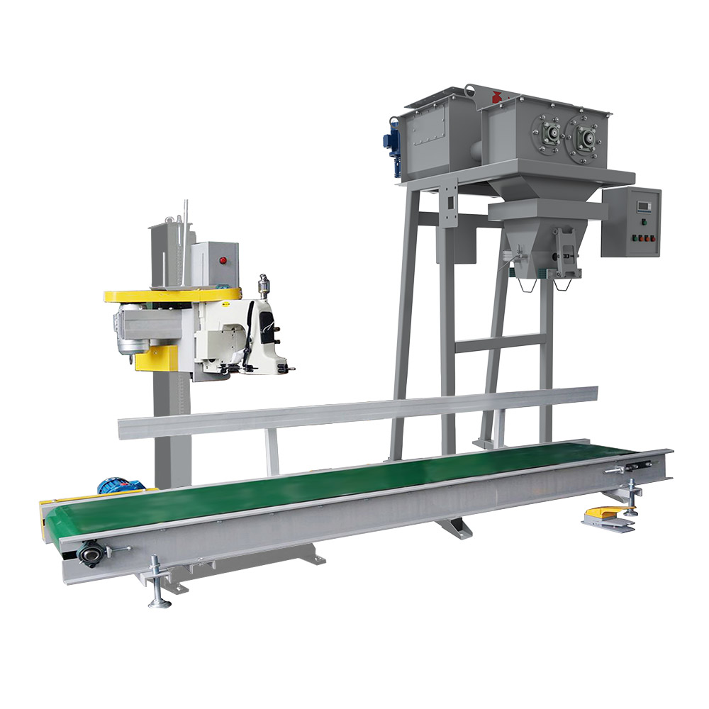 В линию включен дозатор для фасовки, транспортер для отвода мешка в зону зашивки и мешкозашивочная станция с регулировкой под высоту мешка.