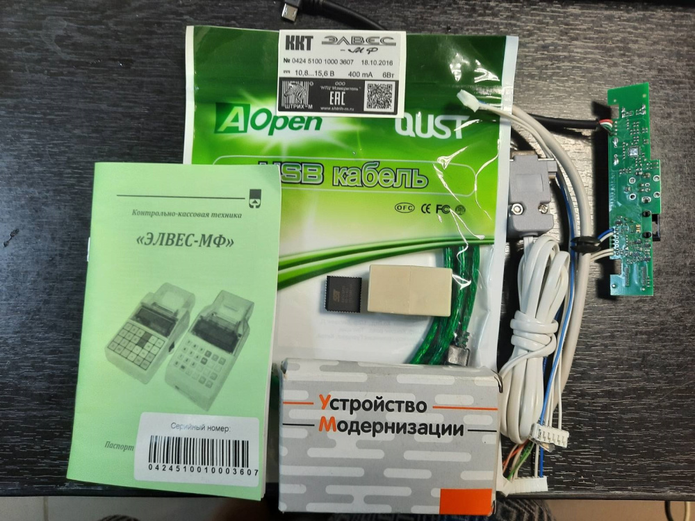 В комплект доработки входит все, что необходимо для модернизации ККМ Элвес-Микро-К и Элвес-МК до нового кассового аппарата ЭЛВЕС-МФ, который соответствует требованиям новой редакции 54-ФЗ.